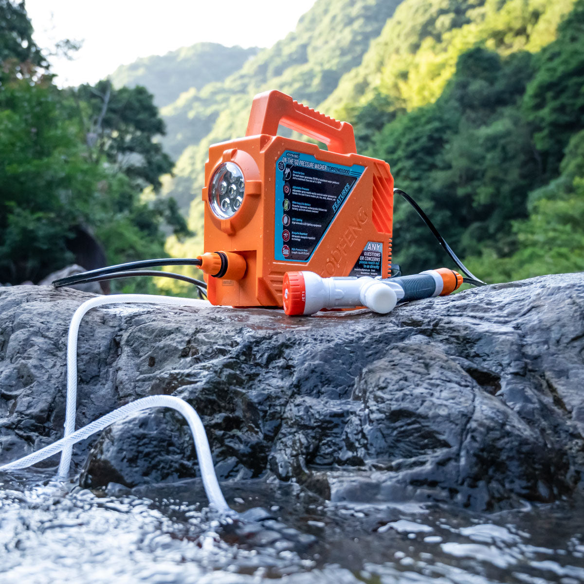 Ideal for washing and bathing while camping, RV, beach, or washing car and watering plants when you don't have access to a water faucet and/or power. Simply pump water from your bucket, river, lake or other water source, then this powerful 50 watt motor sends it down the 24.6 feet hose through an adjustable sprayer. Takes just seconds to set up, super easy to use, and very portable to take everywhere.