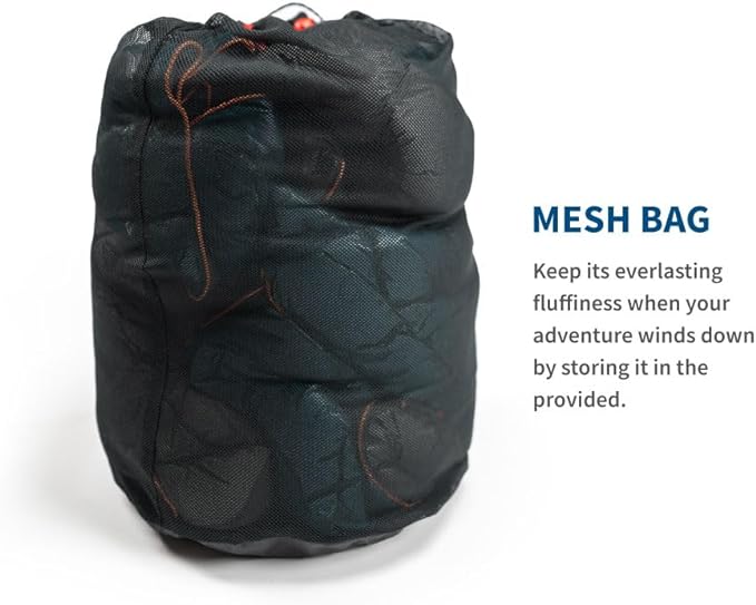 Unwind in Cozy Comfort: Our camping blanket keeps you snug and warm, thanks to its premium 650 fill power down. Whether it's a chilly night under the celestial canopy or a summer breeze by the lakeside, it's your trusted companion. When your adventure rests, tuck it into the included mesh bag, ensuring its perpetual fluffiness.