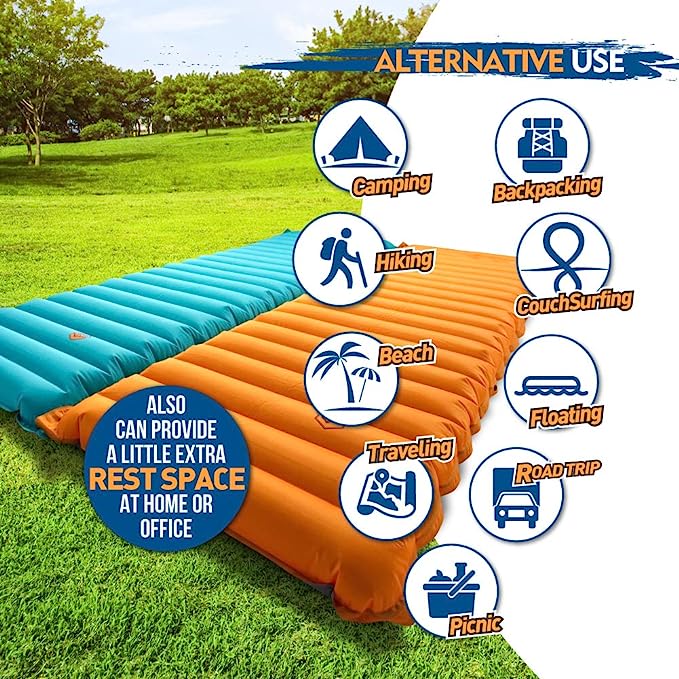 - * ALTERNATIVE USE This camping mat folds up to a compact 6" x 6" x 14" just right to fit into a backpack or suitcase. Essential for backpacking, camping, car traveling, hunting, beach, etc. Even can be used as a floating mattress for great fun in summer! The Snaps also allow you to connect pads together to create the double camping pads, which provides more room to stretch out.