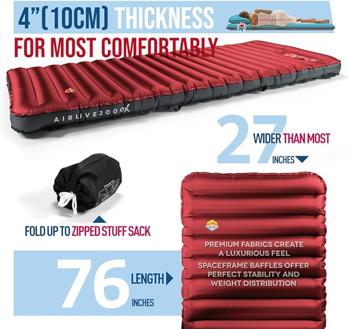 Included Components: 1 x ZOOOBELIVES 3D Wrapping Sleeping Pad - Airlive2000X, Emergency repair patch is included on the sack, User guide, Come with a zipped drawstring stuff sack1 x ZOOOBELIVES 3D Wrapping Sleeping Pad - Airlive2000X, Emergency repair patch is included on the sack, User guide, Come with a zipped drawstring stuff sack